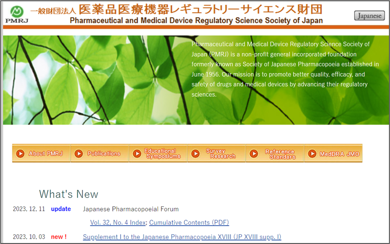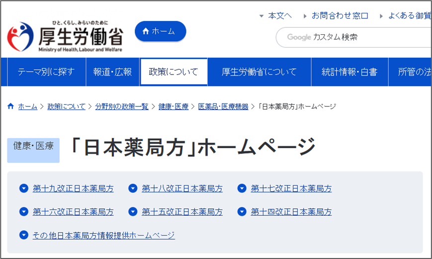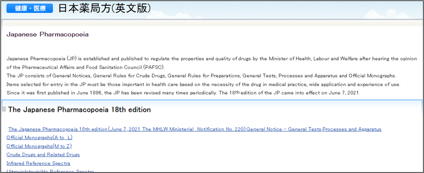 进入网站后可以直接搜索“日本薬局方”,即可进入以下页面,目前更新到18版。