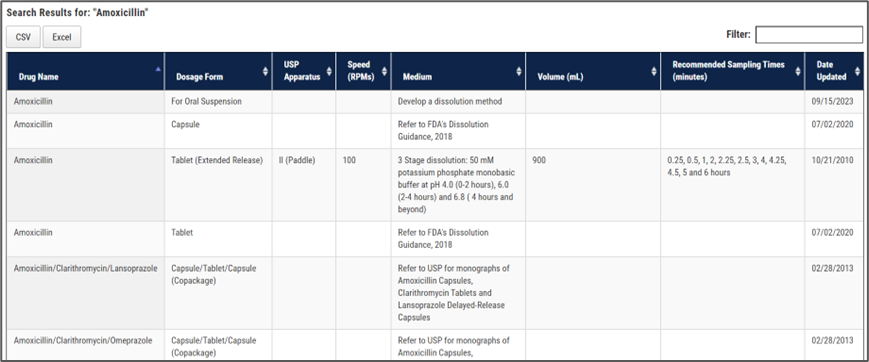 (2) Dissolution Methods Database Search:可查询FDA收录的各种产品的溶出方法;